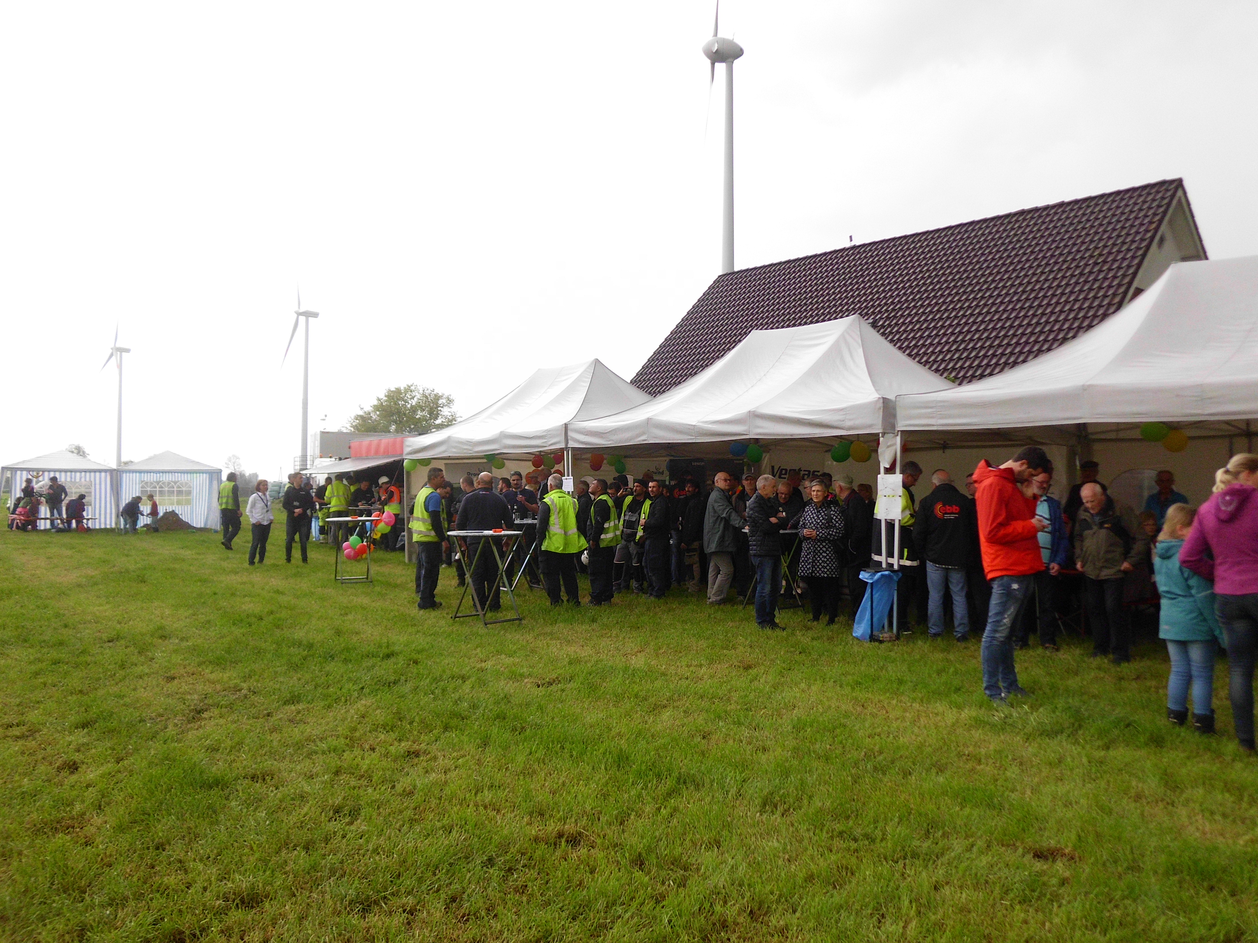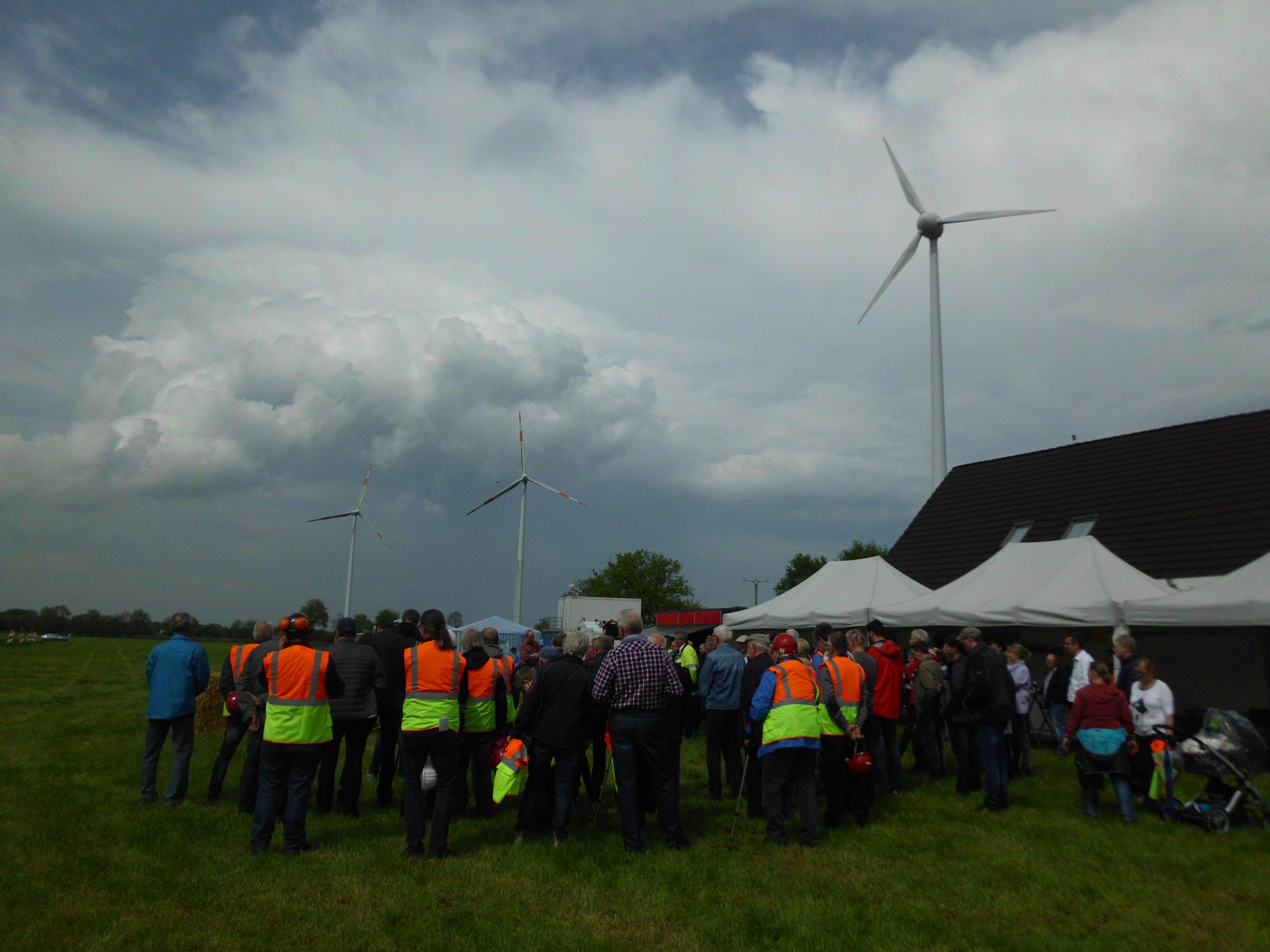 Heute fand die öffentliche Baustellenbesichtigung in Waldseite an den Anlagen statt. Jede Stunde wurden Führungen angeboten, bei denen man sich die Anlagen von nahem ansehen konnte. Neben den Rotorblättern oder den Turmteilen konnte auch der bereits stehende Turm besichtigt werden. Hierbei konnte man viele weitere Informationen zu den Anlagenteilen erhalten. Ein Flügel wiegt beispielsweise bis zu 13 Tonnen, die Nabe 12 Tonnen, das Maschinenhaus 130 Tonnen und die gesamte Anlage bis zu 438 Tonnen. Insgesamt war die Veranstaltung sehr informativ und interessant. Auf den Bildern sind einige Eindrücke der Veranstaltung zu sehen.